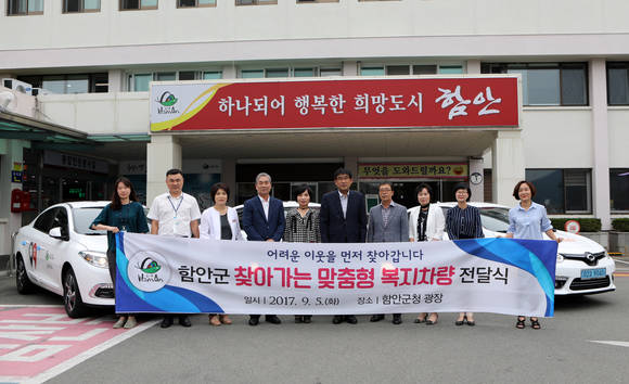 이날 전달식은 가야읍과 칠원읍, 군북면에 전기차 각 1대씩을 전달했으며, 맞춤형 복지차량은 찾아가는 복지상담, 통합사례관리, 민관협력활성화 등 수요자 중심의 맞춤형 복지서비스를 제공한다.