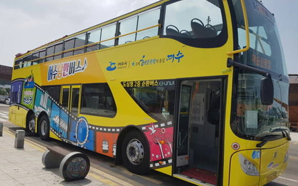 도시를 관광하는 2층 '시티투어' 버스의 형태로 운영하는 여수시의 '낭만버스'는 이순신 광장을 출발지와 도착지로 정해두고, 여수의 밤 풍경으로 유명한 곳들인 돌산대교, 소호 동동다리, 예울마루 지역 등을 돌아요. 또 90분 정도 공연도 진행해요.