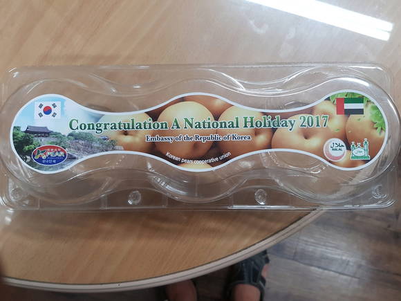 [프라임경제] 진주시는 지난 6일 주아랍에미리트 한국대사관 '한국인의 날' 행사에 문산읍에서 선발한 진주배를 납품했다고 8일 밝혔다.