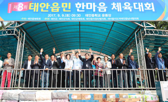 태안읍 체육회 주관으로 치러진 이번 대회는 읍민들의 화합과 단결을 도모하고 고장에 대한 자긍심을 높이기 위해 전격 추진됐으며 줄다리기와 배구 등 다양한 종목과 경품 추첨 등 다채로운 행사가 진행돼 관심을 끌었다.