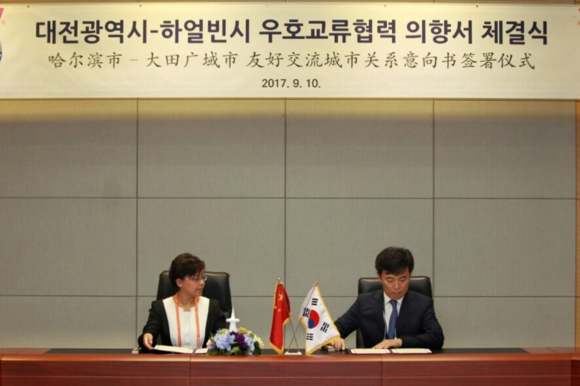 [프라임경제] 대전광역시(시장 권선택)는 10일 중국 하얼빈시와 경제·사회·문화 등 각 분야에서의 교류 및 협력 증진을 위한 우호교류협력의향서를 체결했다고 밝혔다.