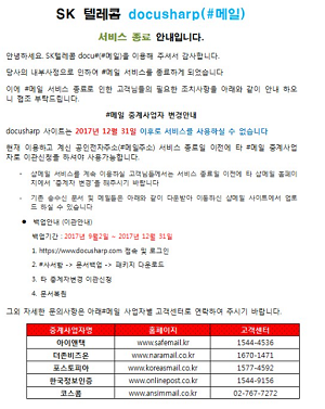13일 업계에 따르면 SK텔레콤은 지난 2013년 도입한 샵메일 '도큐샵'을 오는 12월31일을 마지막으로 서비스를 종료한다.
