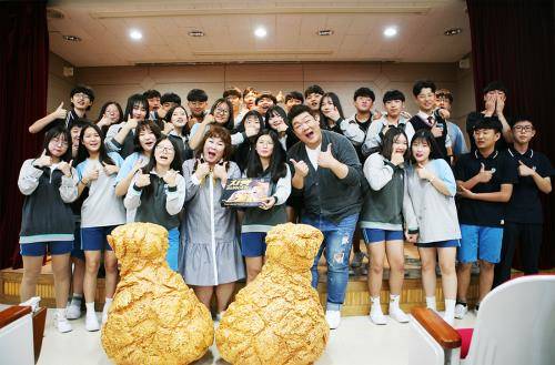 또, 다양한 게임을 비롯해 학생들과 즉석에서 투존치킨 인기 메뉴인 '치빵버거'를 만드는 시간도 보냈다.