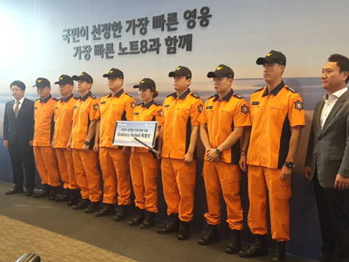 아울러 이날 행사에는 서울재난본부 중부소방서 소방관 여덟명이 초청돼 각각 100만원 미만의 '갤럭시노트8 특별상'을 받았다. SK텔레콤이 진행한 대국민 투표 이벤트에서 소방관이 가장 빠른 영웅으로 선정된 까닭이다.