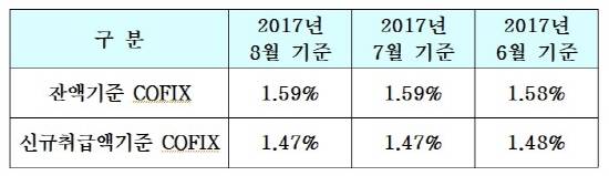 전국은행연합회는 8월 신규 취급액 기준 코픽스가 전달과 동일한 1.47%라고 15일 밝혔다. 잔액 기준 코픽스도 1.59%로 전월과 같았다.