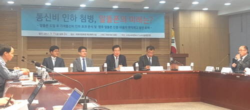통신비 인하 정책 일환인 '25% 선택약정할인'이 시행된 15일, 국회의원회관 제2세미나실에서 녹색소비자연대 전국협의회와 신경민 더불어민주당 의원실 주재로 열린 '통신비 인하 첨병, 알뜰폰의 미래는?' 토론회에서는 알뜰폰 진흥 방안을 모색했다.
