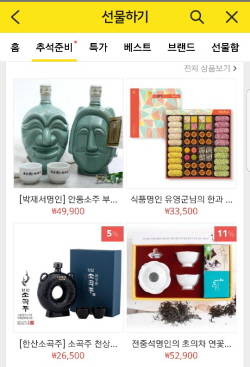 추석 상품 기획전은 다음달 8일까지 진행되며 신선식품·건강식품·종합선물세트 등 명절에 전통적으로 인기를 얻는 상품과 올해부터 온라인 판매가 개시된 전통주 등으로 구성된다.