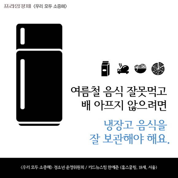 [우리모두뉴스: 카드] "날씨 더운 때엔 냉장고 음식을 잘 보관해야 해요"