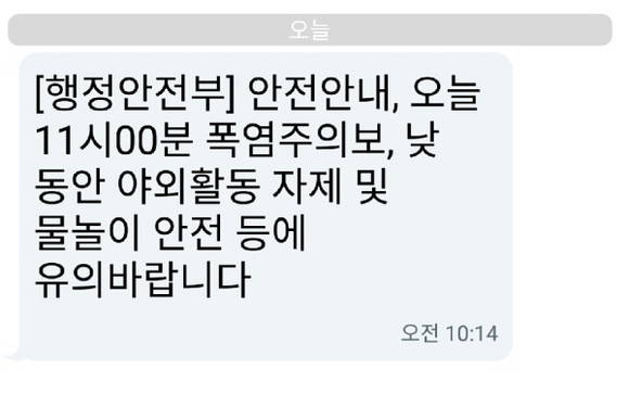 [프라임경제] "낮동안 야외 활동을 하지 말고 물놀이 안전 등에 유의바랍니다" 이런 문자를 받은 적이 있지요? 예를 들면 미세먼지가 많은 경우, 폭염주의보, 폭우주의보, 지진 경보 등이 있어요.