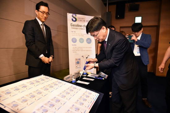 이날 설명회에서는 '가짜휘발유 판별 용지'를 활용한 가짜휘발유 판별 시연회도 열렸다. 내달부터 전국 25개 자동차검사소에서 서비스될 예정인 '판별 용지'는 가짜 휘발유의 특정 성분에 반응해 변색하는 기술이 적용된 용지가 가짜 휘발유가 닿으면 5초에서 2분 이내에 남색으로 색이 바뀌어 가짜 여부를 간편하게 알 수 있다.