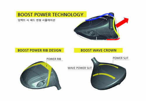 JGR 드라이버는 파워 슬릿에 '웨이브 파워 슬릿'을 추가해 '부스트 파워 테크놀로지'를 완성하고, 더욱 빠른 볼 스피드와 강력한 탄도를 만들어냈다.