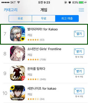 '별이되어라'는 지난 21일 진행한 'SECOND IMPACT 칠태량' 업데이트를 통해 매출 순위가 급등하며 애플 앱스토어 매출 7위까지 상승했다.