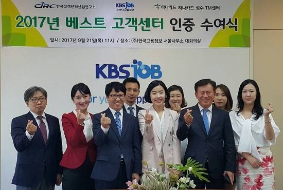 [프라임경제] 한국고용정보 하나카드 성수TM센터는 '베스트고객센터 인증'을 획득하고 서울 성동구에 위치한 한국고용정보 서울사무소 대회의실에서 지난 21일 2017 베스트고객센터 인증 수여식을 진행했다.