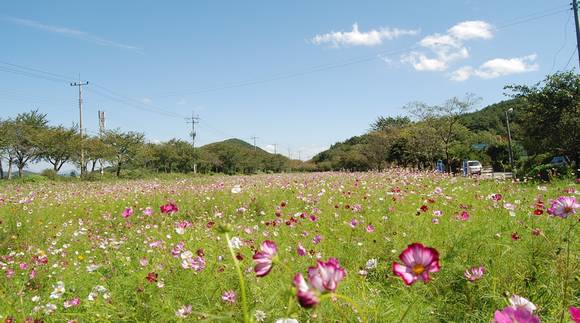 코스모스가 활짝 핀 위치는 오천면과 천북면으로 나눠지는 삼거리이며, 올해 봄에는 유채꽃과 벚꽃이 만개해 아름다운 경관을 연출했던 곳이고, 지난 6월 유채꽃이 질 시기에 코스모스 씨앗을 뿌려 정성을 들인 결과 현재 분홍빛 코스모스의 자태가 절정에 이르렀다.