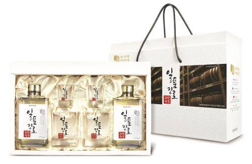이번 일품진로 추석 선물세트는 일품진로(375㎖) 2병과 함께 스트레이트잔 2개, 언더락스잔 2개로 구성했다.