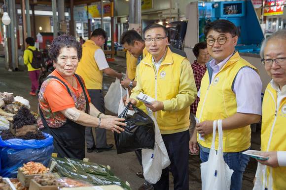 이번 행사는 내수침체로 경제적 어려움을 겪는 전통시장의 판매촉진과 온누리상품권 이용확대를 통한 지역상권 활성화를 도모하고자 노사가 하나가 돼 진행됐다.