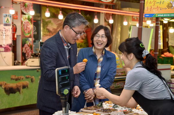 [프라임경제] 김재현 산림청장(왼쪽) 부부 내외가 추석명절을 앞둔 26일 대전중리시장을 찾아 임산물 및 제수용품을 구입하고 있다.
