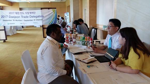 대전시가 주최하고 중소기업진흥공단 대전지역본부와 인도 뭄바이·첸나이 코트라 무역관 주관으로 진행된 인도 해외시장개척단은 △매인 △셀아이콘랩 △시온택 △알피에스 △에스디코리아 △에스엠인스트루먼트 △텔트론 △위더스코리아 등 우수한 제품을 보유한 대전지역 8개 업체가 참가했다.