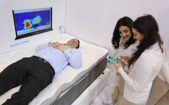 수면패턴을 분석해 코골이 습관을 교정할 수 있는 기기도 있다. 코웨이가 올해 초 미국 라스베이거스에서 선보인 '에어 매트리스'다. 이 기기는 데이터 분석을 통해 사용자의 편안한 숙면을 유도하면서 코골이까지 교정해 준다.