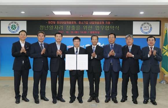 이를 위해 시는 대전지방고용노동청, 대전충남지방중소벤처기업청, 중소기업진흥공단 대전지역본부 등과 10일 오후 2시 대전시청 중회의실에서 '내일채움공제' 협업을 위한 업무 협약을 체결했다.