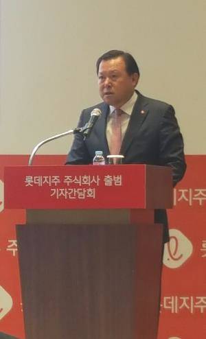 황각규 롯데지주 주식회사 대표가 12일 서울 송파구에 있는 롯데월드타워 31일층 컨퍼런스룸에서 '롯데지주 주식회사 공식 출범 기자간담회'를 열고 이 같이 말했다.