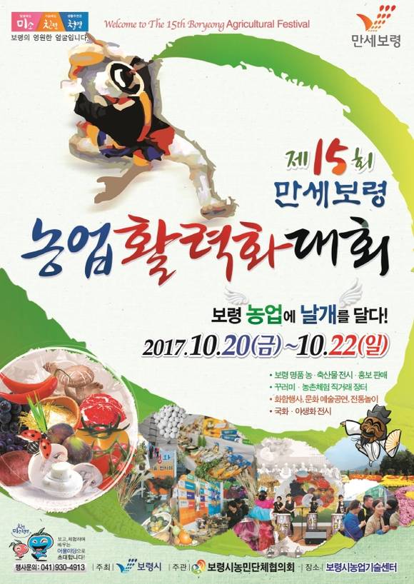 보령시농민단체 협의회가 주관하는 이번 행사는 '보령농업에 날개를 달다'라는 주제로 열악한 기상여건 속에서도 풍년농사를 일궈온 농업인들을 격려하고, 농업인과 소비자가 함께 고품질 농축산물과 함께 만나는 화합과 상생의 행사로 마련된다.