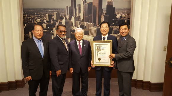 LA시는 완도군과 지속적인 교류를 통해 상호 발전적인 관계로 발전시키기 위해 LA 명예시민증을 전달했다.