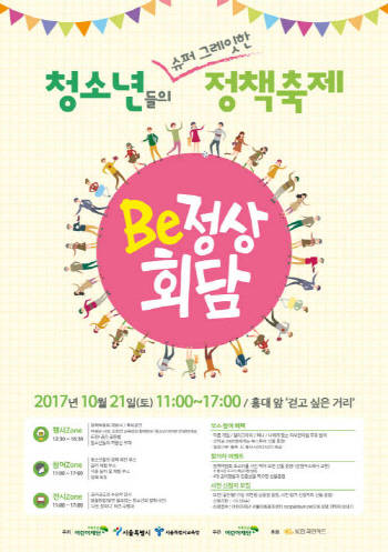 [프라임경제] 아동권리증진 및 옹호사업을 활발하게 펼치고 있는 초록우산 어린이재단(회장 이제훈)에서는 서울특별시, 서울시교육청과 함께 주최하고 KB국민카드가 후원하는 아동청소년 정책박람회 'Be정상회담'을 오는 21일 홍대 걷고싶은거리에서 개최한다.