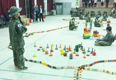 행사의 마지막은 한반도를 형상화한 도미도. 도미노는 학생들이 위치한 강원도 고성에서 출발, 한국과 북한 지역을 거쳐 함경북도 최북단에서 통일 철길로 휴전선에 도달, 철책선이 무너지는 포퍼먼스를 펼쳐, 박수와 환호로 하나됐다.