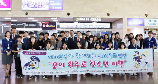 에어부산의 이번 '꿈의 활주로 청소년 여행'은 지난 9월 대구시 교육청 및 대구시사회복지협의회와 맺은 사회공헌 업무협약의 일환으로 진행된다.