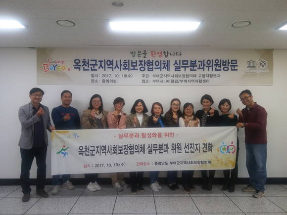 18일에는 옥천군지역사회보장협의체(고용자활분과) 위원들과 함께 부여군협의체 고용자활분과의 활동내용을 공유하고 옥천군의 일자리사업단 2곳을 견학하는 일정을 진행했다.