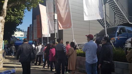 19일 오전 10시30분 영등포동 7가 71-3에 마련된 견본주택 현장은 많은 예비 청약자들이 관람을 위해 대기하고 있었다. 1시간을 넘게 대기했다는 김포에 거주하는 A씨는 "오피스텔에 관심이 있어 보러 왔다"면서 "임대를 놓거나 곧 직장에 들어갈 자녀가 사용하게 할 목적이다"라고 말했다.