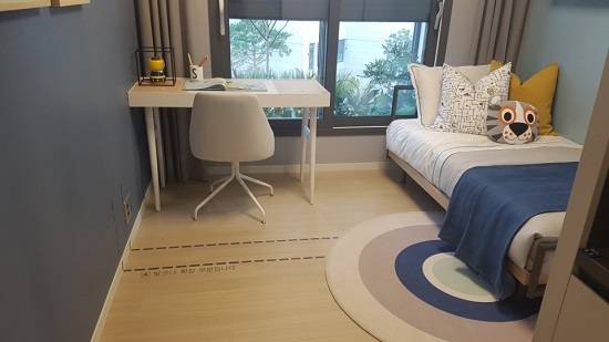 견본주택 내 유니트는 오피스텔 전용면적 18㎡과, 아파트 전용면적 59㎡, 84㎡ 평형대가 설치됐다. 오피스텔의 경우 원룸형태에 빌트인 방식으로 에어콘, 세탁기 등이 제공 된다. 좁은 공간을 배려한 화장실 문의 미닫이 설계가 돋보였다.