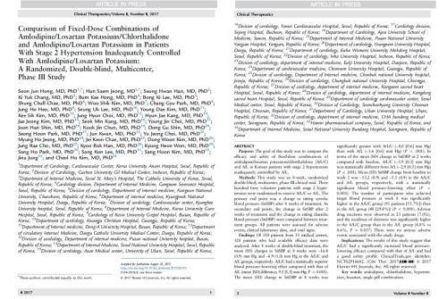이번에 게재된 연구는 김철호 분당서울대병원 순환기내과 교수가 책임을 맡은 임상 3상(ALCH-301) 결과로, 국내 34개 기관에서 Amlodipine/Losartan 2제 요법에 반응하지 않는 제 2기 고혈압 환자 340명을 대상으로 아모잘탄플러스 투여군과 Amlodipine/Losartan 2제 요법 투여군으로 나눠 8주간 비교한 것이다.