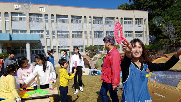 학생들은 푸른 가을 하늘 아래에서 함께 텐트를 설치하는 등 캠프장을 꾸미고, 슝슝 에어로켓, 휭휭 드론, 휘잉 종이비행기 코너에서 드론과 비행기 등을 하늘에 날리며 가을의 아름다움을 체험하고 느꼈다.