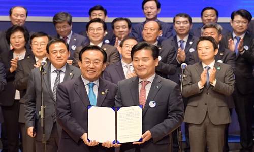 지난 26일 박람회장 엑스포홀에서 열린 지방자치의 날 기념식에 참석한 대한민국시도지사협의회장 등 4대 협의체장은 선언문을 낭독한 후 이를 주철현 여수시장에게 전달했다.