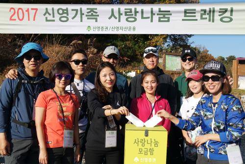 한편, 신영증권은 나눔경영 실천을 위해 사랑 나눔 트레킹 행사와 더불어 △연말 연탄 나눔 봉사 △매월 소외계층 봉사 △문화예술 후원사업 등 다양한 사회공헌 활동을 진행하고 있다.