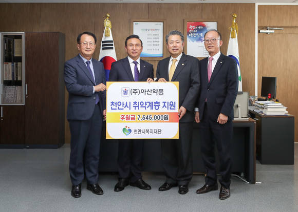 [프라임경제] 충남 천안시복지재단은 아산약품(대표 안병광)이 30일 지역 내 소외계층 지원을 위한 후원금 754만5000원을 기탁했다고 알렸다.