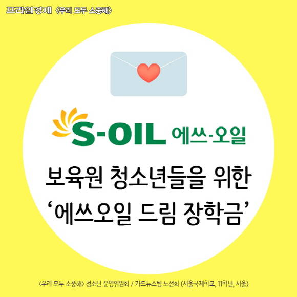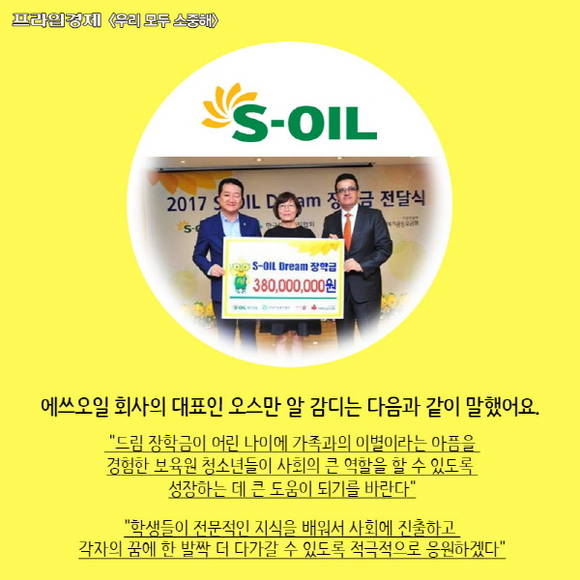 [우리모두뉴스: 카드] 보육원 청소년들을 위한 '에쓰오일 드림 장학금'이 있어요