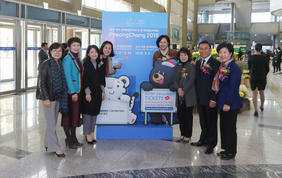 이날 '수호랑 반디랑' 홍보 마스코트와 함께하는 기념촬영 이벤트가 진행되며 행사 참여자들은 한마음으로 평창동계올림픽의 성공개최를 염원했다.