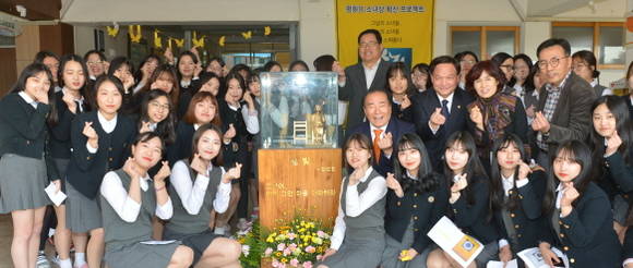 [프라임경제] 장휘국 광주시교육감이 1일 조선대학교여자고등학교에서 열린 대한민국 제106호 '작은 소녀상' 제막식에 참석해 모금활동을 진행한 조대여고 학생회와 가람평화나비 동아리 학생들을 격려했다.