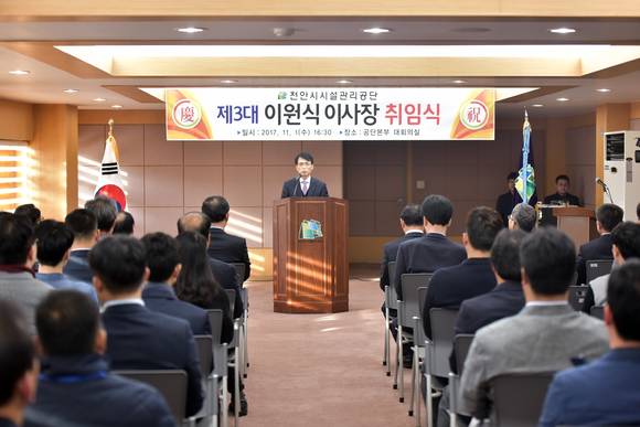 또 "구본영 시장의 시정방침인 시민중심 행정에 초점을 맞춰 행복을 만들어가는 참 시민 공기업이 되도록 최선의 노력을 기울이겠다"고 전했다.