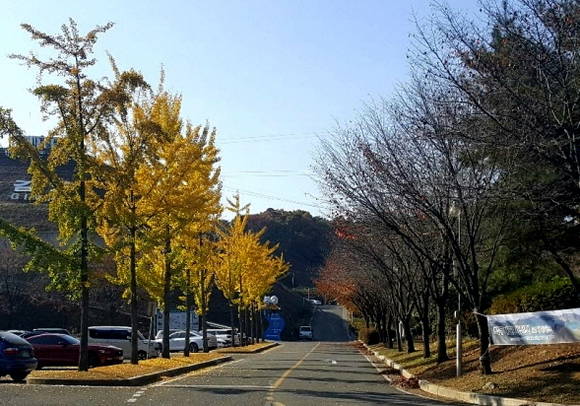 [프라임경제] 김포시 월곶면에 있는 조각공원 길입니다. 지난 10월25일에 찍은 사진입니다. 빨간색, 노란색, 초록색, 길가의 나무 잎 색깔이 예쁩니다. 하늘은 파란색입니다. 예쁜 색이 많아서 그림 같습니다. 가을은 그림 같습니다.