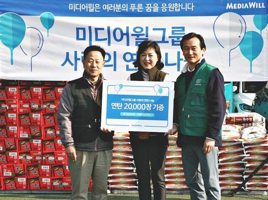 미디어윌그룹은 지난 4일 밥상공동체 복지재단 연탄은행(대표 허기복)과 함께 서울 노원구 상계동 일대에 거주하는 독거노인 및 저소득층 가정을 찾아 연탄 2만장과 쌀, 라면 등을 전달했다.