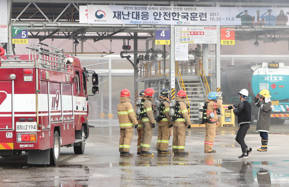 이번 훈련은 지진발생, 대형화재, 유류폭발사고의 3단계 재난 발생상황을 가상하고 대응태세 능력을 배양하기 위해 실시됐다.
