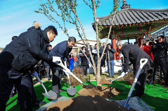 이번에 만들어진 '우호의 숲'은 두 나라가 앞으로도 함께 같이 나아가기를 바라는 의미를 갖고 있어요. 그리고 우리나라의 정원처럼 정자와 기와가 있고, 무궁화와 소나무도 많이 심어져 있어요.