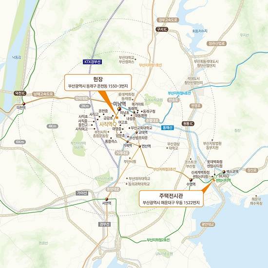 e편한세상 동래온천 견본주택은 부산 광역시 해운대구 우동 1522에 위치한다. 입주는 2020년 6월 예정이다.