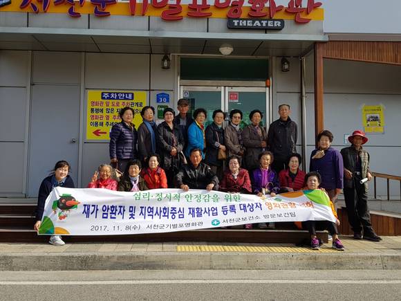 [프라임경제] 충남 서천군보건소(소장 김재연)는 8일 재가 암환자 및 지역사회중심 방문재활 등록 장애우 20명에게 영화 관람의 기회를 제공했다고 10일 알렸다.