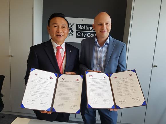 이번 협약 체결식에는 구본영 시장과 노팅엄시 국제교류 체결 권한을 갖고 있는 샘웹스터 대표의원을 비롯해 이안 커리어 노팅엄시 행정최고책임자, 오택림 재영 한국대사관 참사관 등이 참석했다.