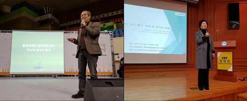 한글미디어문화제 본 행사일인 10일 포럼의 연설자로 나선 김정순 휴먼에이드미디어센터장(신구대 교수)은 휴먼에이드가 지난 1년6개월 동안 전개한 '우리 모두 소중해' 캠페인의 진행 상황을 알리고, 참석자들에게 발달장애인 사회적 참여의 중요성을 강조했다.